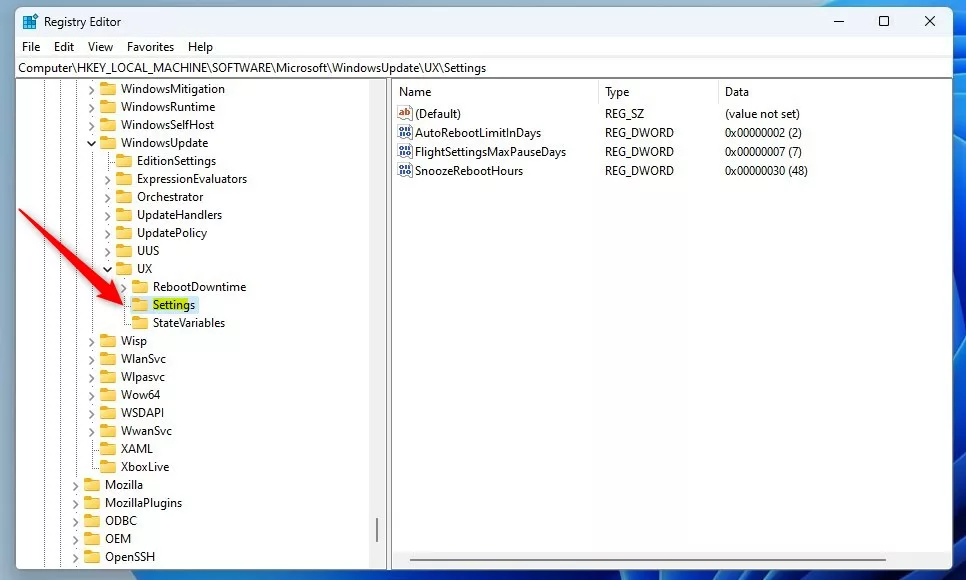 HKEY_LOCAL_MACHINE\SOFTWARE\Microsoft\WindowsUpdate\UX\Settings