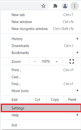 p>Luncurkan “Chrome” dan masuk ke akun yang benar jika belum selesai.Klik “elipsis vertikal” (tiga titik vertikal) di pojok kanan atas browser Anda untuk membuka menu Chrome.