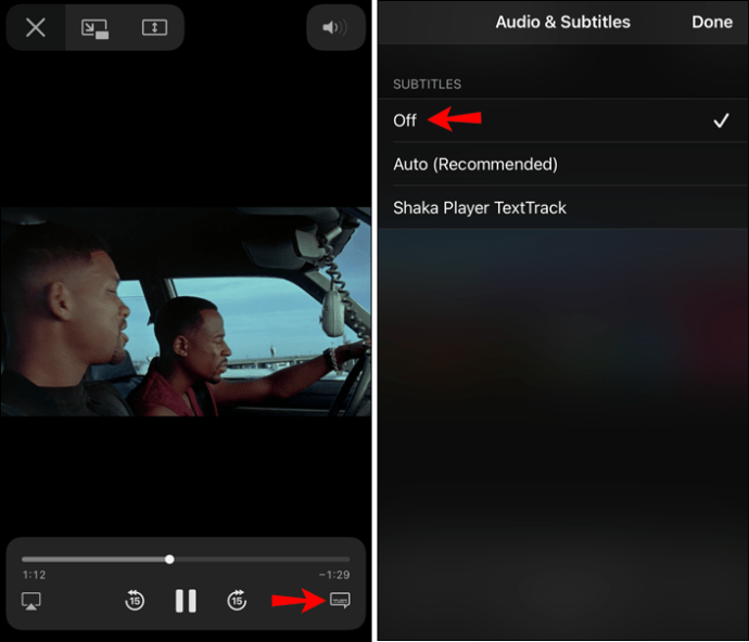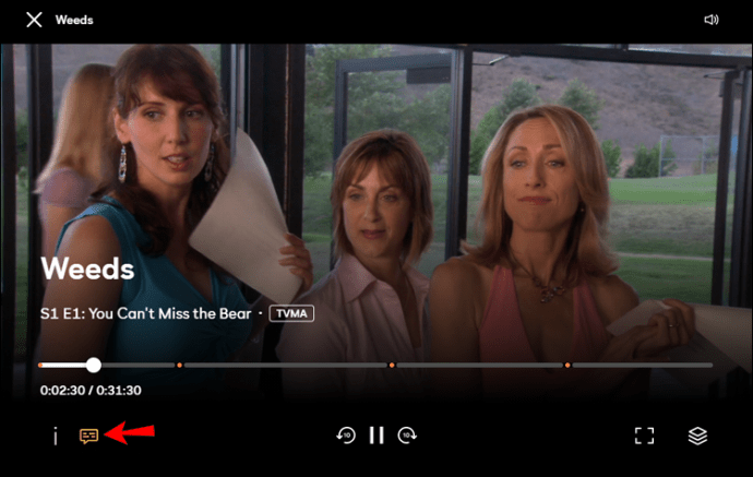 Tocca il pulsante fumetto di testo (sottotitoli) e ruota la sottotitoli Ono Off.