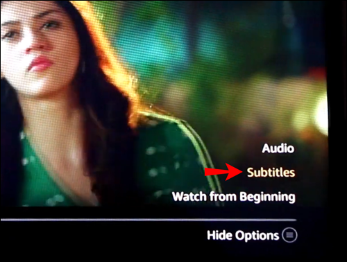 Quando inizia la riproduzione del video su Peacock TV, premi il pulsante Menu sul telecomando.Quando vengono visualizzate le opzioni di riproduzione video, navigare con il telecomando per Sottotitoli.