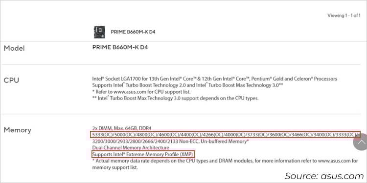 La prossima cosa da controllare è la pagina delle specifiche della scheda madre. Conferma se supporta XMP e nota anche levelocità OC che è in grado di gestire.