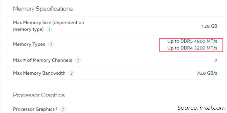 Tra tutti, il più importante è il tuo processore. Sebbene i processori Intel sbloccati (quelli con suffissi K e X) siano pronti per XMP, anche alcune serie non K lo supportano. Quindi, dai un’occhiata alle sue specifiche per assicurarti che anche il tuo processore sia compatibile. Mentre ci sei, controlla la frequenza massima supportata della tua CPU per confermare se è in grado di gestire la frequenza nominale della RAM. In caso contrario, potresti essere limitato alla velocità di memoria supportata dal tuo processore o addirittura riscontrare problemi di avvio.