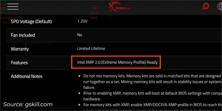 La prossima cosa da controllare è la pagina delle specifiche della scheda madre. Conferma se supporta XMP e nota anche levelocità OC che è in grado di gestire.