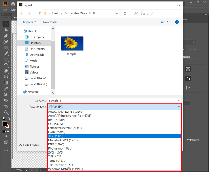 Scegli il formato desiderato, ad esempio come TIFF, SVG o PNG. Apri l’immagine per verificare che lo sfondo sia trasparente.