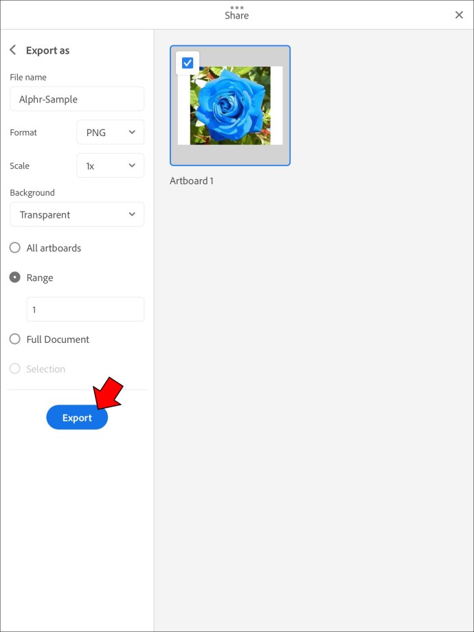 Scegli Esporta tavola da disegno e lo sfondo dovrebbe essere trasparente una volta aperto il file PNG.