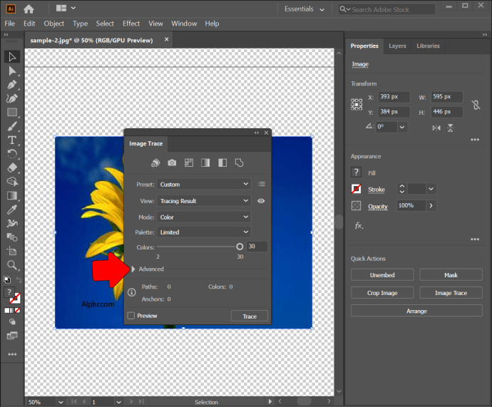 Adobe Illustrator consente di utilizzare uno sfondo trasparente praticamente in qualsiasi formato, incluso il PDF. Ma prima di esportare il tuo file, devi prima apportare alcune modifiche alla tua immagine. Ancora una volta, puoi applicare il metodo”Image Trace”.