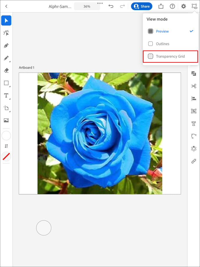 La versione iPad di Illustrator è intuitiva tanto quanto l’istanza PC. Di conseguenza, puoi applicare lo stesso metodo per rendere trasparente lo sfondo bianco.
