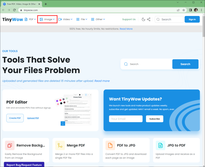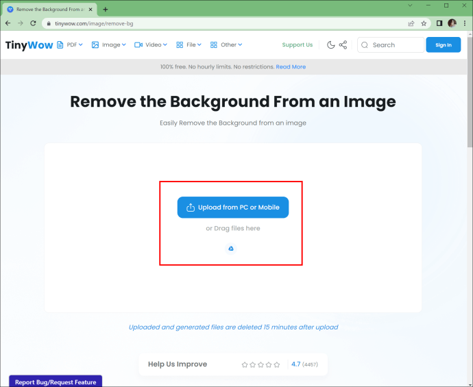 TinyWow è una piattaforma adatta ai principianti che ti consente di apportare ogni tipo di modifica alle tue immagini di Illustrator. La rimozione dello sfondo è una delle funzionalità più utili. Richiede solo pochi clic.