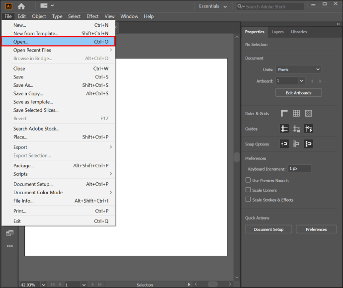 Apri Adobe Illustrator e trova l’immagine che desideri modificare o crea una nuova immagine.