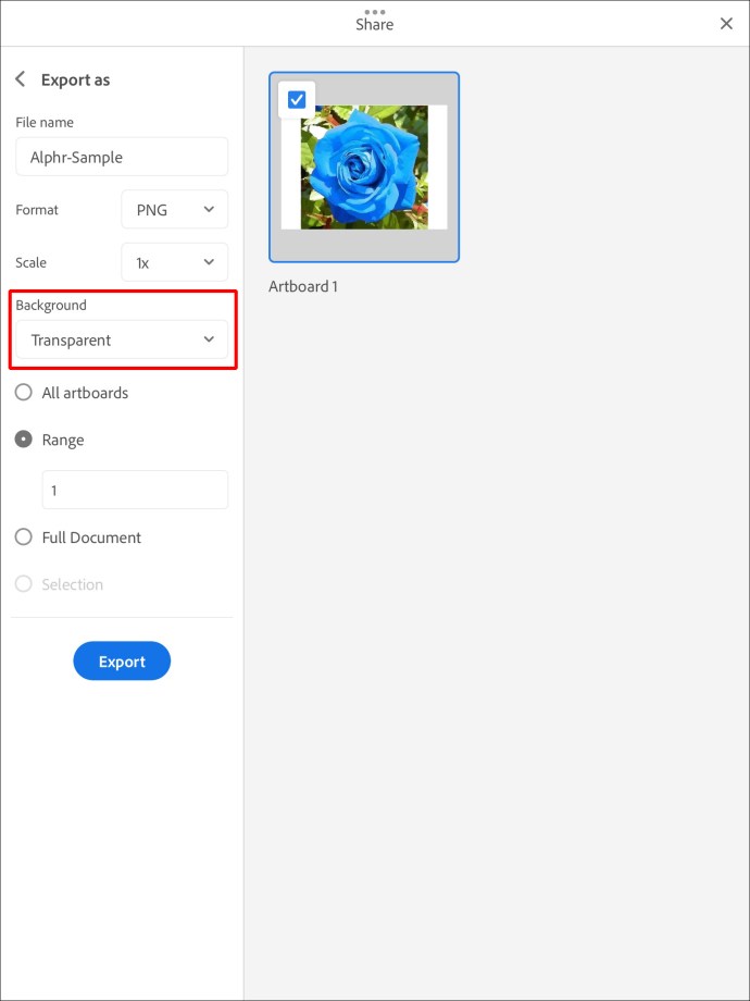 Scegli Esporta tavola da disegno e lo sfondo dovrebbe essere trasparente una volta aperto il file PNG.