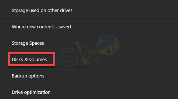 4. Seleziona Disco e volumi.