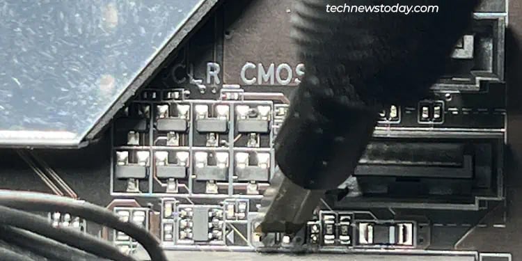 La tua scheda dovrebbe anche avere pin che puoi cortocircuitare per cancellare il CMOS. Questi verranno nominati sulla falsariga di CLR, CLEARCMOS, JBAT1, BIOS CONFIG e così via. Assicurati di controllare il manuale e identificare i pin corretti da cortocircuitare, poiché potresti danneggiare completamente la scheda mettendo in corto pin casuali.