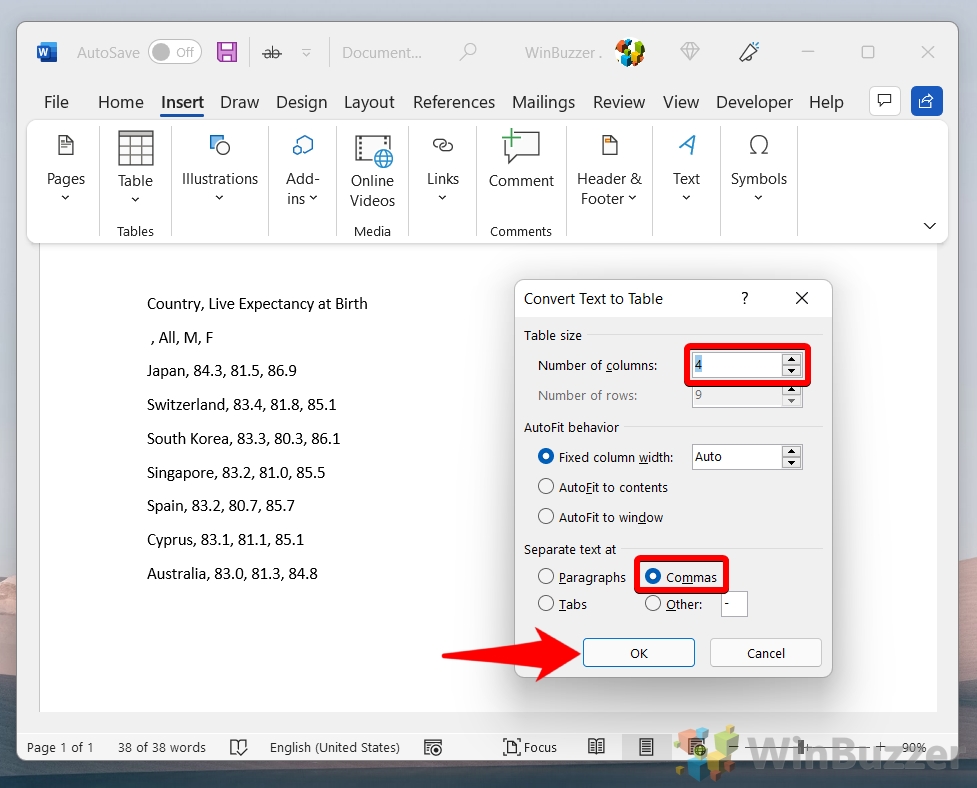 L’uso della finestra di dialogo Inserisci tabella consente maggiore precisione e personalizzazione quando si inserisce una tabella in Word. Questo metodo è ideale quando hai bisogno di un tavolo con dimensioni specifiche che potrebbero non essere facilmente selezionabili tramite il metodo della griglia. Fornisce opzioni aggiuntive come l’impostazione del numero esatto di righe e colonne e la regolazione della larghezza delle colonne.