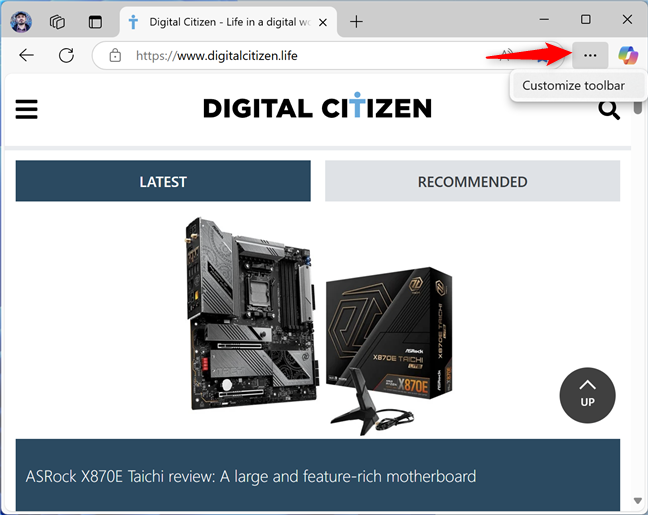 Esiste un altro metodo per vedere la barra dei Preferiti di Microsoft Edge in ogni momento, visualizzarla in nuove schede o nasconderla completamente. Fai clic con il pulsante destro del mouse (o tieni premuto) sul pulsante Impostazioni e altro (…) nell’angolo in alto a destra di Microsoft Edge, quindi tocca o fai clic su Personalizza barra degli strumenti. Questa azione apre le Impostazioni e ti porta alla sezione Aspetto, dove puoi personalizzare la barra dei Preferiti, tra molte altre cose.