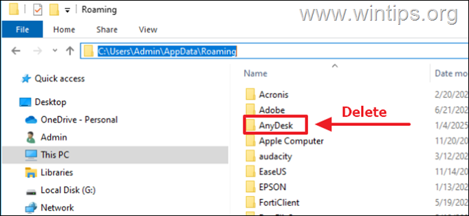 4. Ora procedi ed elimina la cartella”AnyDesk“da queste posizioni:*
