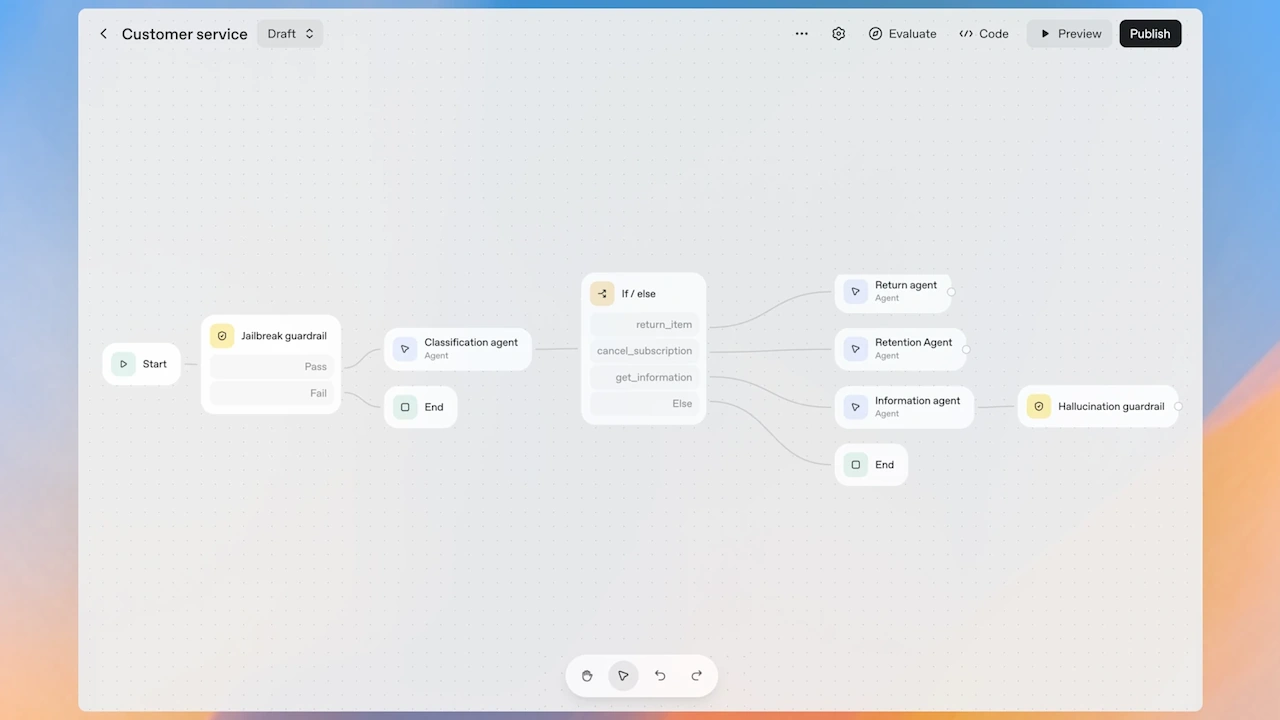 Altman lo ha descritto come simile Canva per gli agenti edilizi, definendolo”un modo veloce e visivo per progettare la logica, i passaggi e le idee”. Consente ai team di progettare la logica con nodi drag-and-drop, connettere strumenti e configurare guardrail.