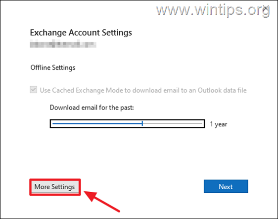 3. Nella finestra”Impostazioni account Exchange”, fai clic su Altro Impostazioni.