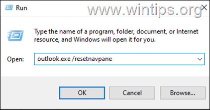 3. Digita il comando seguente per reimpostare il riquadro di navigazione di Outlook e premi Invio: outlook.exe/resetnavpane