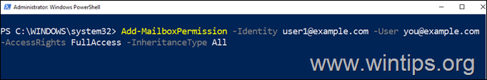 Ad esempio: se desideri concedere a te stesso (ad esempio”[email protected]”) diritti di accesso completi alla casella di posta dell’utente”[email protected]”, immetti il seguente comando:
