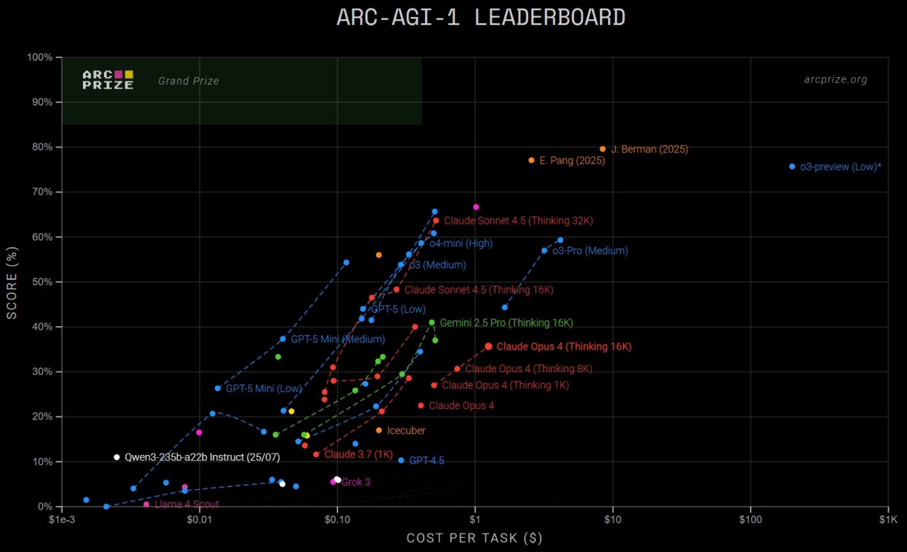 La potenza di TRM è più evidente sui benchmark progettati per testare il ragionamento astratto dell’IA, un dominio in cui anche i modelli più grandi spesso hanno difficoltà. Il suo risultato straordinario arriva con l’Abstract and Reasoning Corpus (ARC-AGI), un’avvincente suite di puzzle visivi semplici per gli esseri umani ma notoriamente difficili per l’intelligenza artificiale.