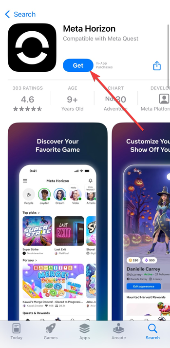 L’app Oculus (ora chiamata app Meta Horizon) è disponibile per iPhone e Android. Ne hai bisogno per connettere, gestire e monitorare le tue cuffie. Installa l’app dall’App Store iOS o dal Google Play Store. Il tuo telefono deve eseguire iOS 13+ o Android 9+ per evitare problemi di compatibilità.