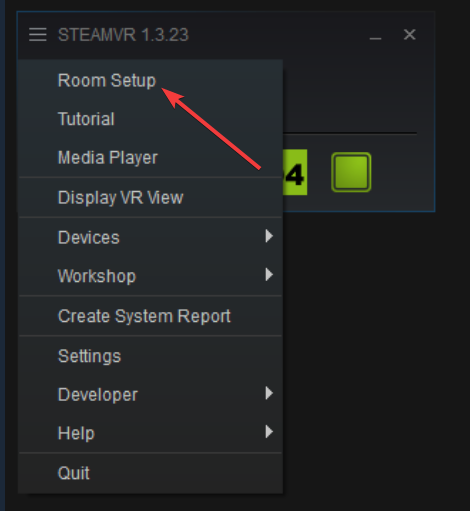 Prima di giocare, devi configurare il tuo spazio di gioco. In SteamVR, fai clic sull’icona del menu e seleziona Esegui configurazione stanza. Scegli Solo in piedi per il gioco seduto o stazionario o Room-Scale per il monitoraggio completo del movimento.