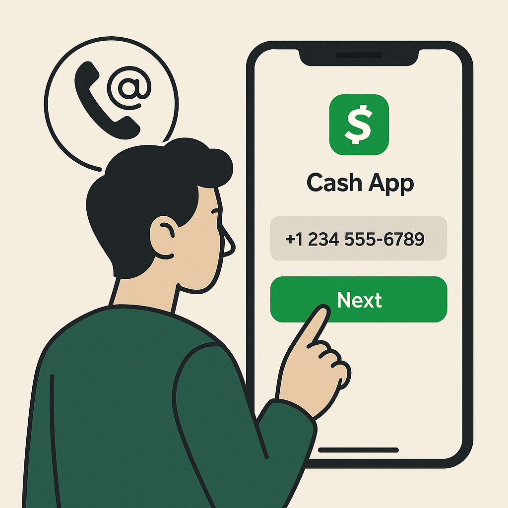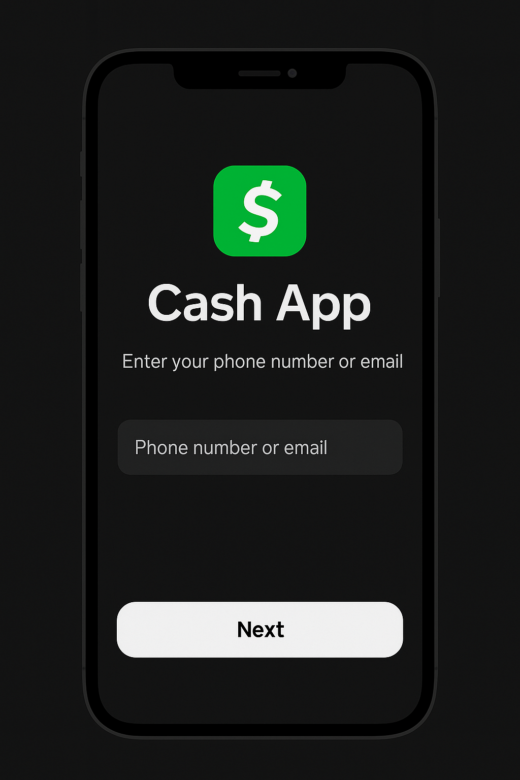Se sei nuovo, seleziona Crea account e segui le istruzioni per registrarti. Ti verrà chiesto un numero di telefono o un indirizzo email. Riceverai un codice monouso, quindi creerai il tuo $Cashtag, collegherai una carta di debito o un conto bancario e completerai la configurazione.