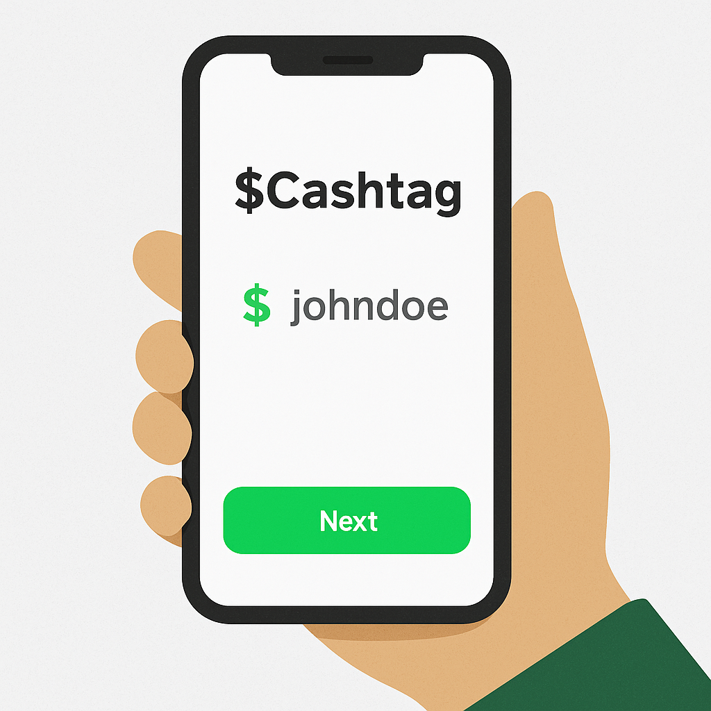 I nuovi utenti possono creare un $Cashtag per facilitare la ricezione dei pagamenti. Inizia con il simbolo del dollaro ($) seguito dal nome o dal marchio scelto.