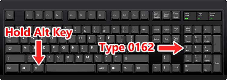 Attiva Bloc Num sulla tastiera. Tieni premuto il tasto Alt. Sul tastierino numerico, digita 0162. Rilascia Alt e verrà visualizzato il segno del centesimo (¢).
