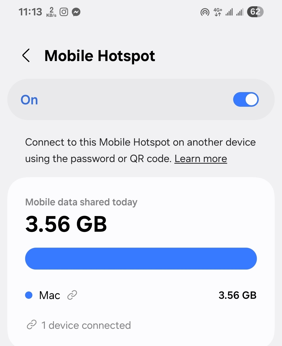 Accendi il tuo hotspot: accendi il tuo hotspot mobile o attivalo nelle impostazioni del tuo smartphone.