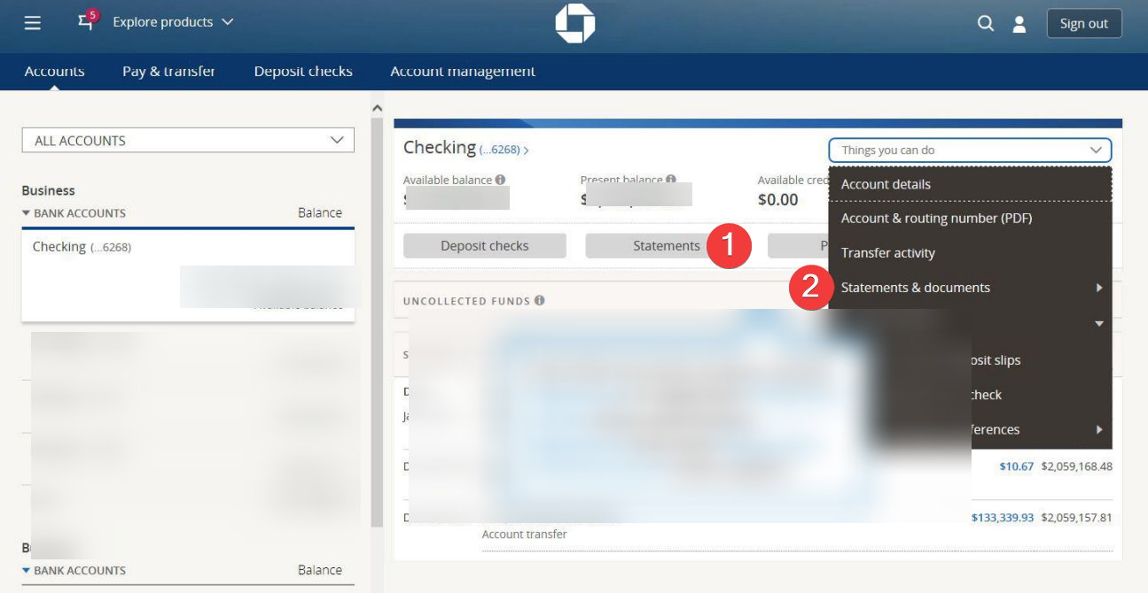 Vai al sito web ufficiale di Chase e accedi con il tuo nome utente e password. Assicurati di essere su una rete privata e sicura prima di inserire le tue credenziali. Dopo aver effettuato l’accesso, seleziona il tuo account e fai clic su Estratti conto e documenti dal menu di navigazione.