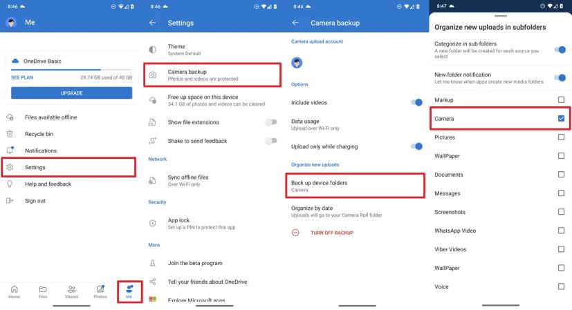 Fai clic su “Impostazioni di backup delle cartelle del dispositivo”.