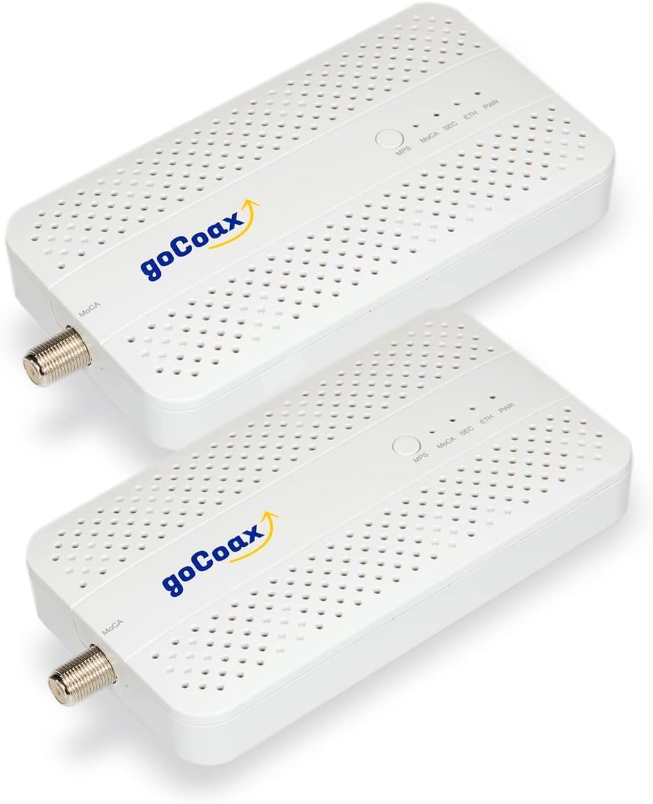 Kit adattatore da coassiale a Ethernet: cerca dispositivi MoCA 2.0 o MoCA 2.5 di marchi affidabili. La maggior parte dei kit viene fornita con due adattatori e alimentatori identici.