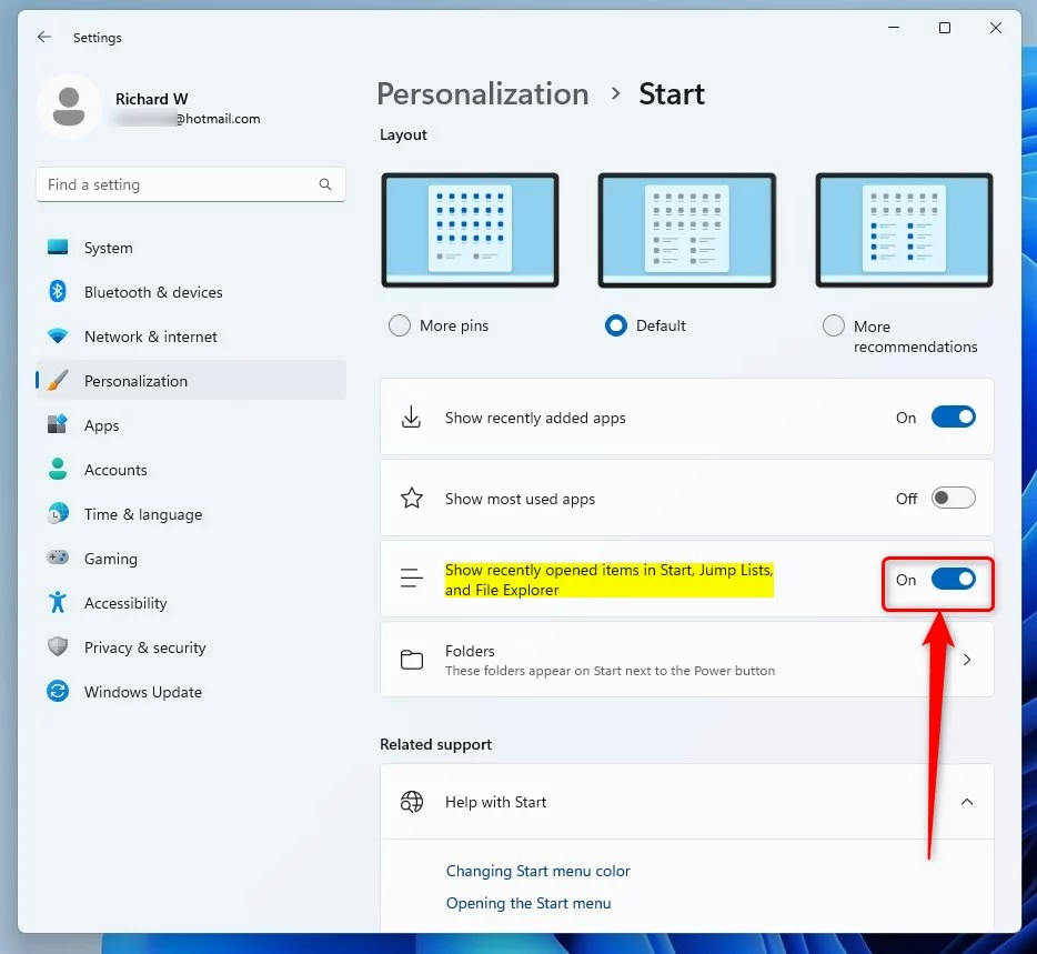 Questo articolo descrive i passaggi che è possibile eseguire per abilitare o disabilitare”Mostra elementi aperti di recente in Start, Jump List ed Esplora file “in Windows 11.