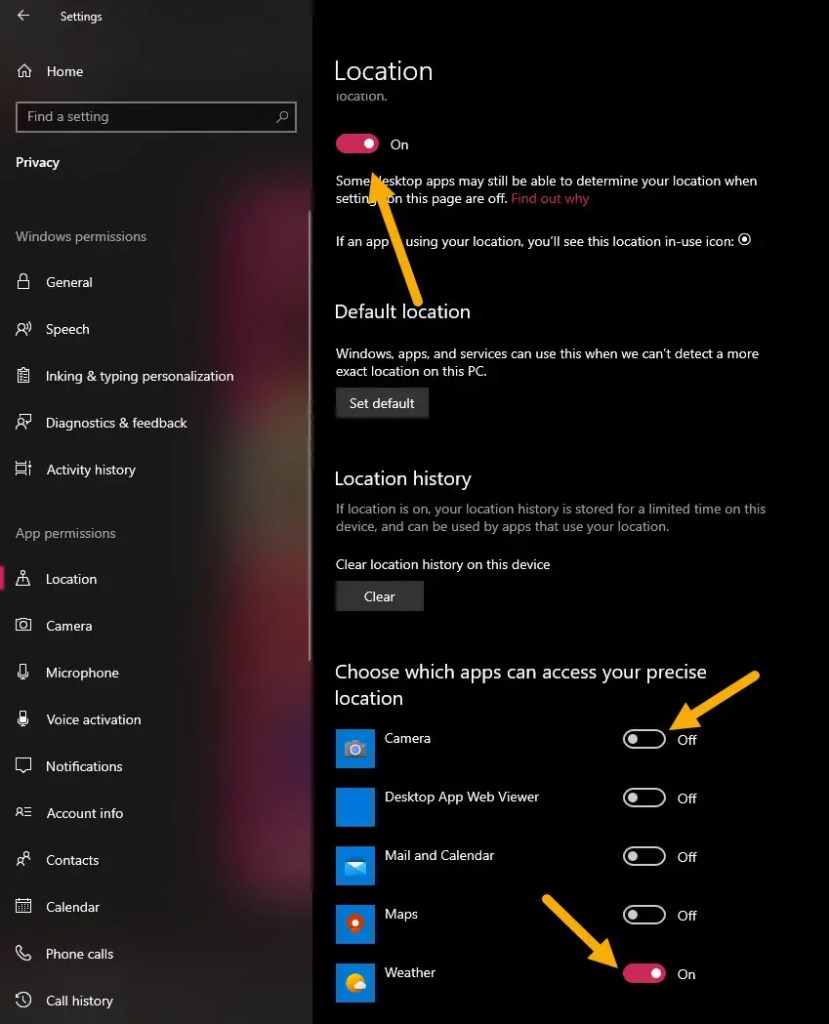 Passaggi per attivare il rilevamento della posizione in Windows 10