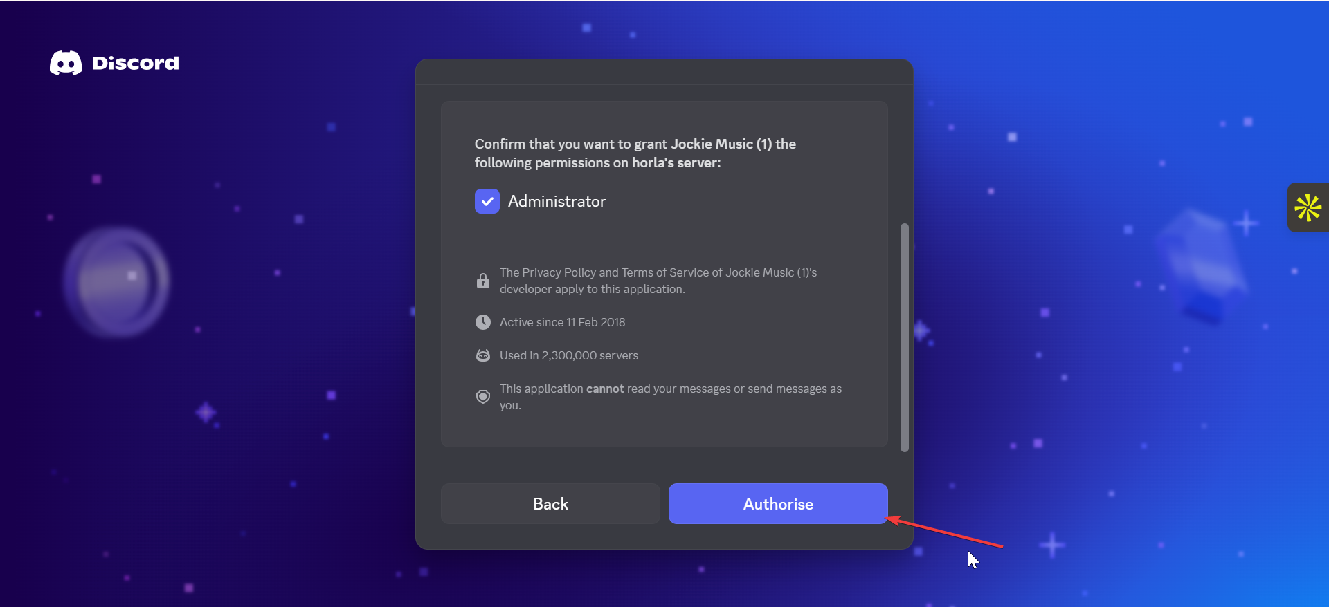Perché non posso aggiungere un bot al mio server Discord? Probabilmente non hai l’autorizzazione Gestisci server. Chiedi al proprietario del server di aggiornare il tuo ruolo.