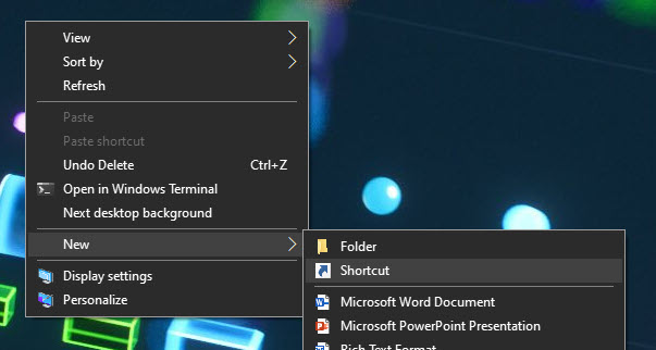 Per creare un collegamento sul desktop personalizzato a una pagina di impostazioni specifica, utilizzeremo i comandi URI dell’app elencati sopra. Puoi pensare all’URI come a un comando specifico per aprire una pagina di impostazioni specifica. Ecco come utilizzarlo per creare il collegamento sul desktop.