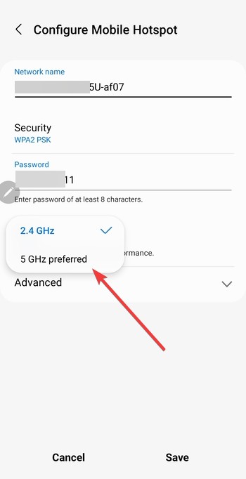Puoi anche personalizzare SSID, password e banda. Basta aprire la schermata di configurazione dell’hotspot. Imposta un nome di rete chiaro e una password complessa. Passa alla banda 5 GHz quando desideri velocità più elevate oppure passa a 2,4 GHz quando hai bisogno di una portata più lunga.