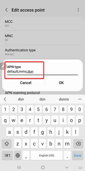 La voce dun abilita il tethering. Salva l’APN e riavvia il telefono.