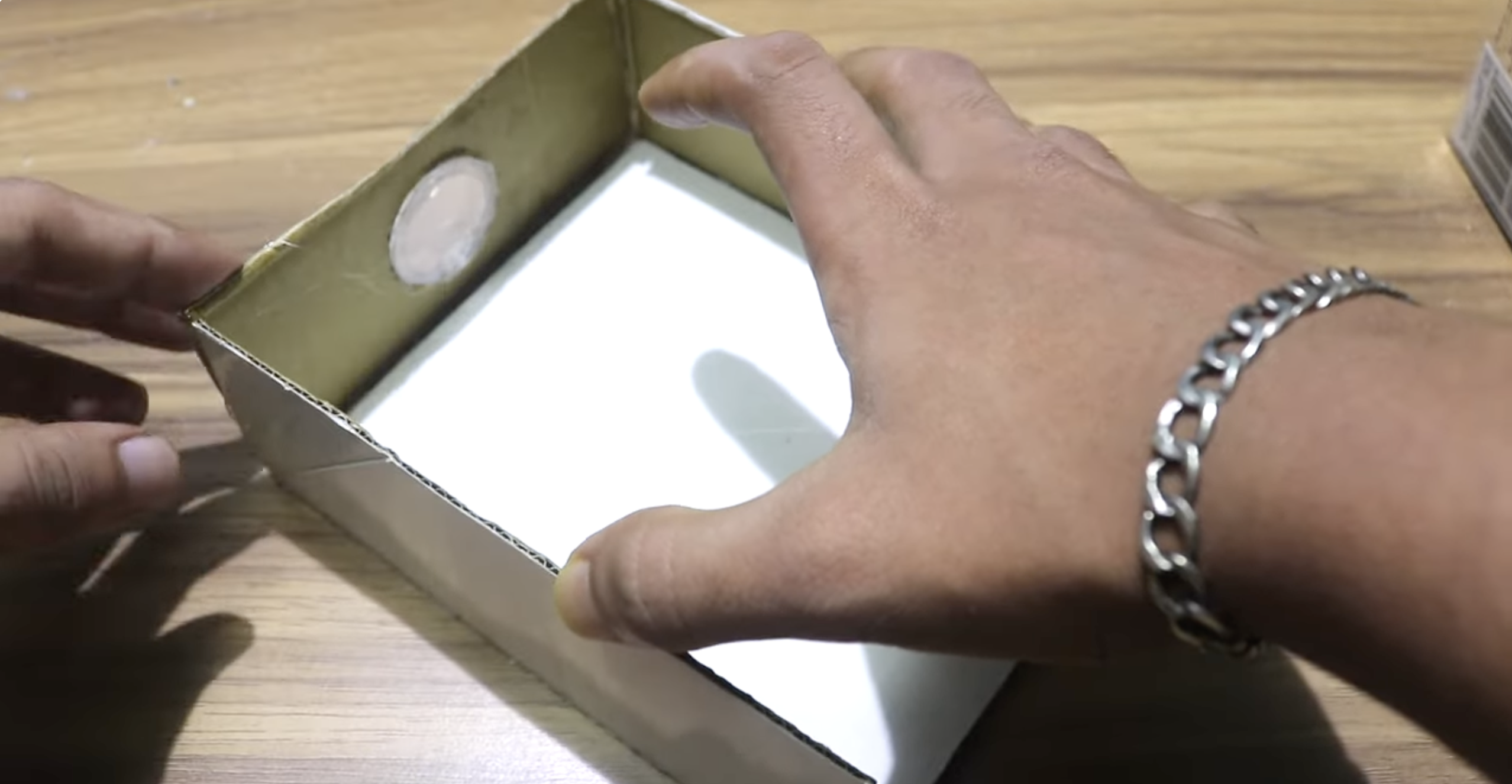 Dipingi l’interno della scatola di nero o rivestila con un tessuto scuro per ridurre il riflesso della luce.