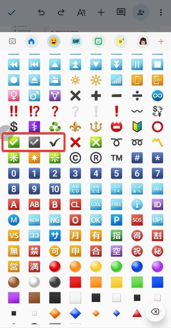 Le tastiere mobili includono segni di spunta nel pannello emoji sia su iOS che su Android.