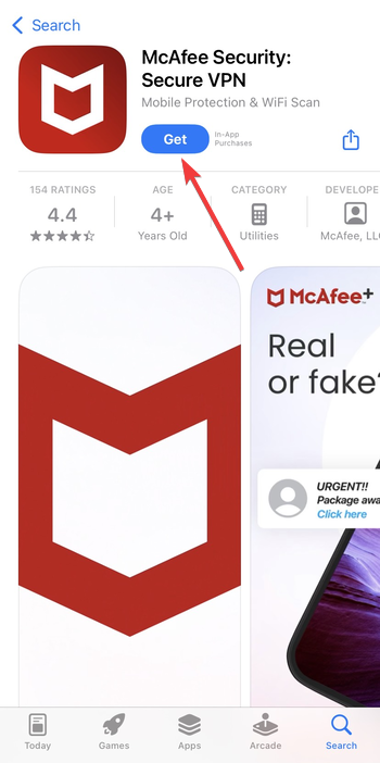 Cerca McAfee utilizzando la barra di ricerca dell’App Store. Ciò evita versioni non ufficiali o obsolete.
