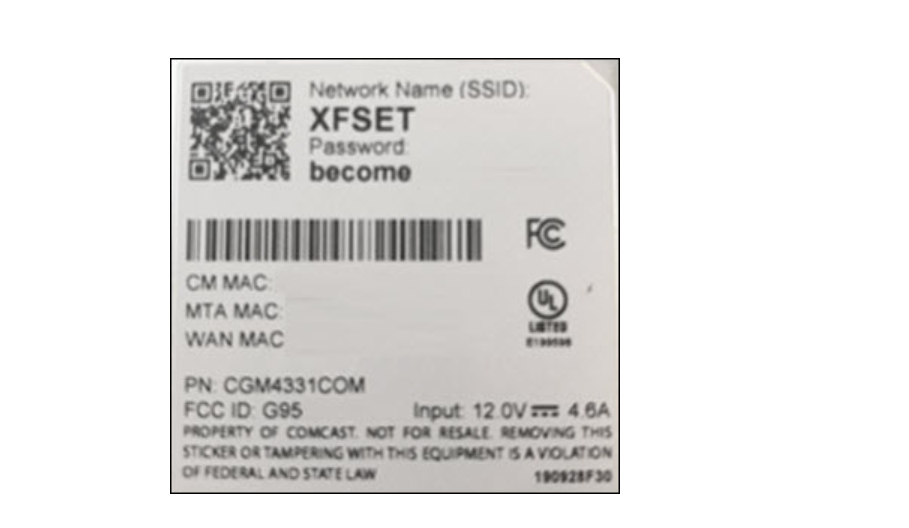 Cerca un’etichetta Xfinity o xFi sul dispositivo o controlla il nome del modello sul pannello inferiore. Puoi anche aprire l’app Xfinity per verificare il modello di gateway rilevato sul tuo account.