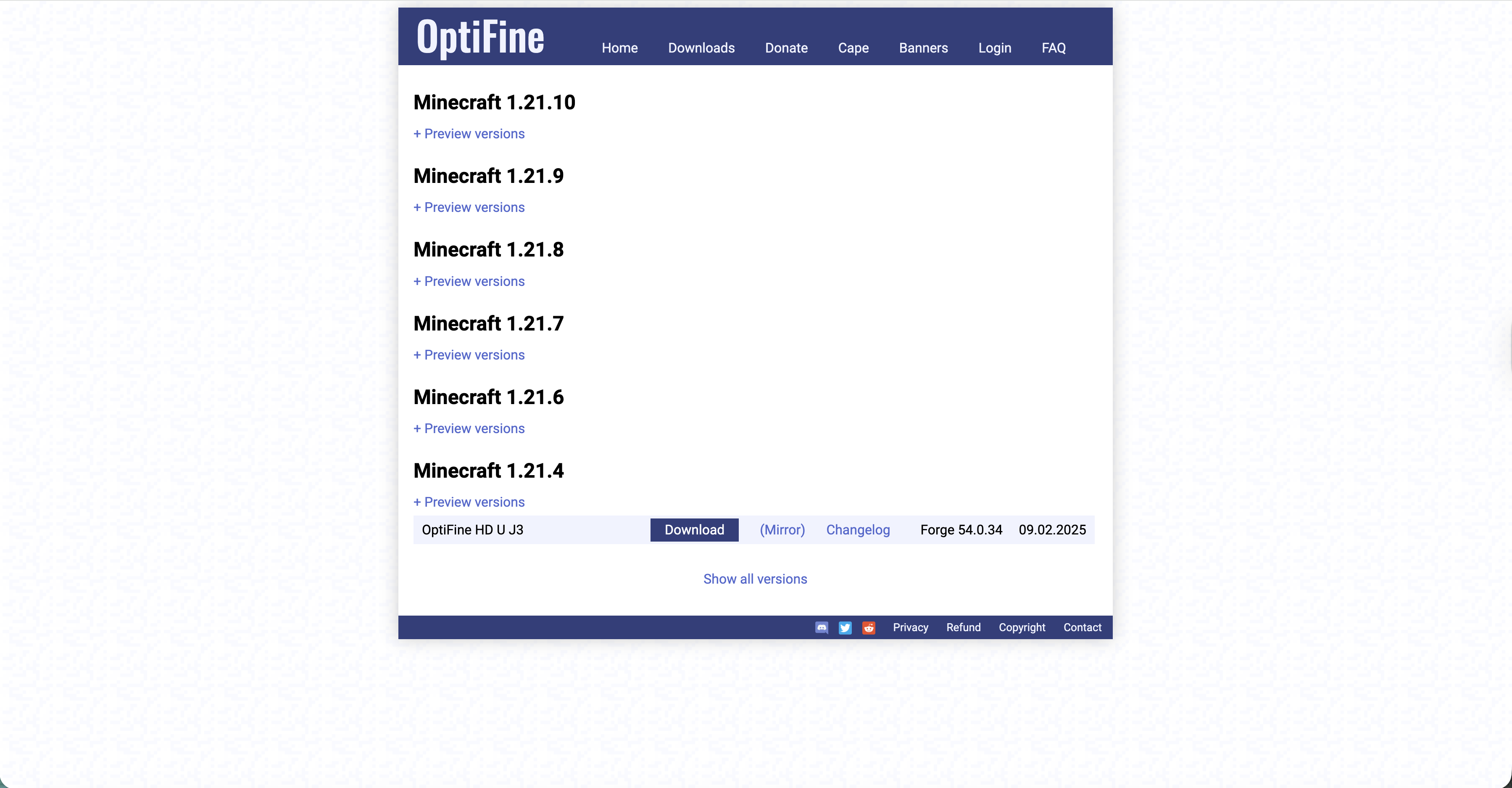 Una volta che conosci la tua esatta versione di Minecraft e hai installato Java, sei pronto per scaricare il programma di installazione di OptiFine corrispondente.