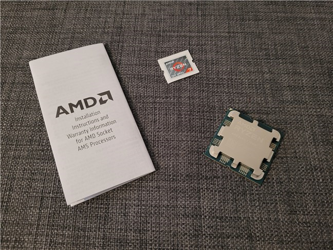 Aprendo la confezione si scopre il suo contenuto: il processore AMD Ryzen 7 7700X, un piccolo adesivo e la garanzia più la documentazione di installazione.