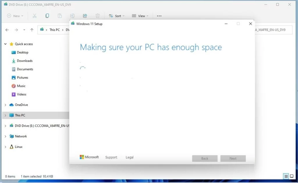 Dovrai anche vedi Windows che verifica di avere spazio sufficiente per l’aggiornamento.