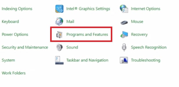 Il controllo Si apre la finestra del pannello. Passare a Programmi e funzionalità.