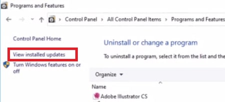 In Programmi e funzionalità , vai all’opzione Visualizza aggiornamenti installati.