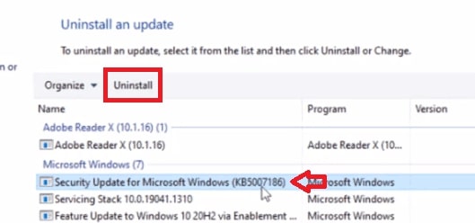 Qui lo farai vedere gli aggiornamenti installati di Windows.Vai all’aggiornamento di Windows installato di recente. Qui fai clic per disinstallare l’aggiornamento.