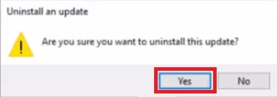 Ora lo farai vedere un’opzione di conferma e premere l’opzione Sì per procedere. Questo disinstallerà l’aggiornamento selezionato.